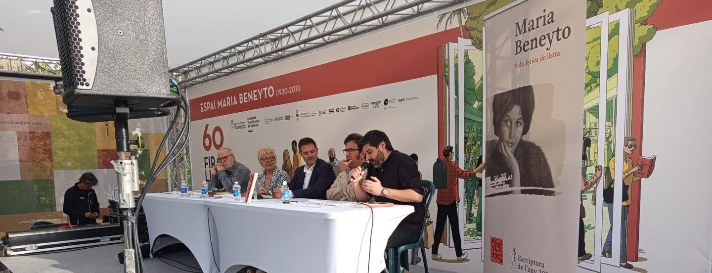 El pasado viernes 25 de abril, se realizó una mesa redonda del libro El riu ve crescut de Maria Beneyto. El acto tuvo lugar dentro de la programación de la Feria del Libro de València en el Espai Maria Beneyto, y contó con la participación de Verònica Cantó, presidenta de la AVL, Josep E. Estrela, director de la Institució Alfons El Magnànim, Vicent Baydal, Edicions de la Drassana, Carme Manuel, traductora del libro y académica de la AVL, y Josep Lacreu, miembro de la AVL.