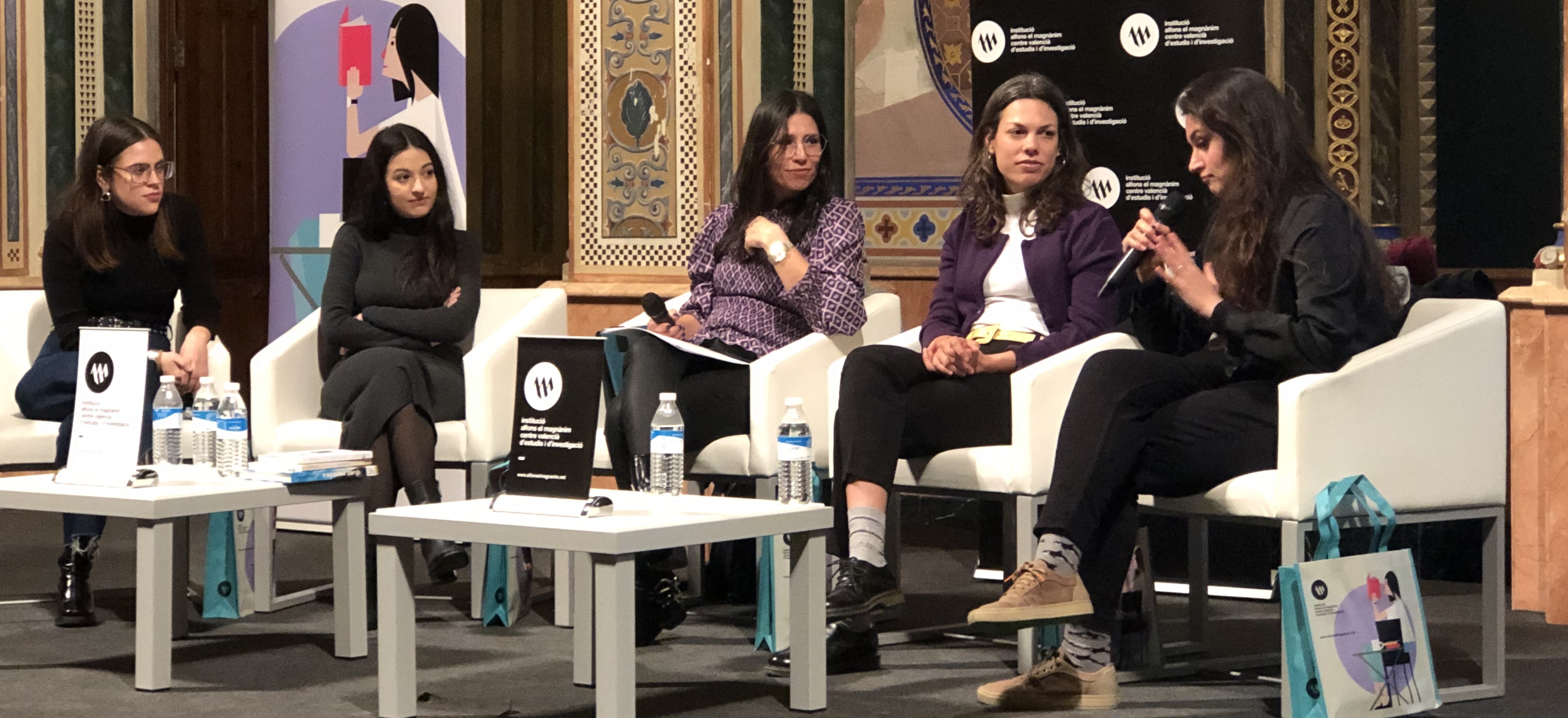 Para celebrar este 8 de marzo, la Institució Alfons el Magnànim organizó ayer una mesa redonda sobre mujeres y libros llamada «Dones i llibres, conversa al voltant del sector editorial», en la que participaron Mercé Climent (editora de Lletra Impresa), María Palau Galdón (escritora), Marta García Carbonell (escritora), Irene Klein (autora y Premio València Nova de narrativa en valenciano 2023) i Núria Tamarit (il·lustradora i Premio València de novela gráfica 2018).