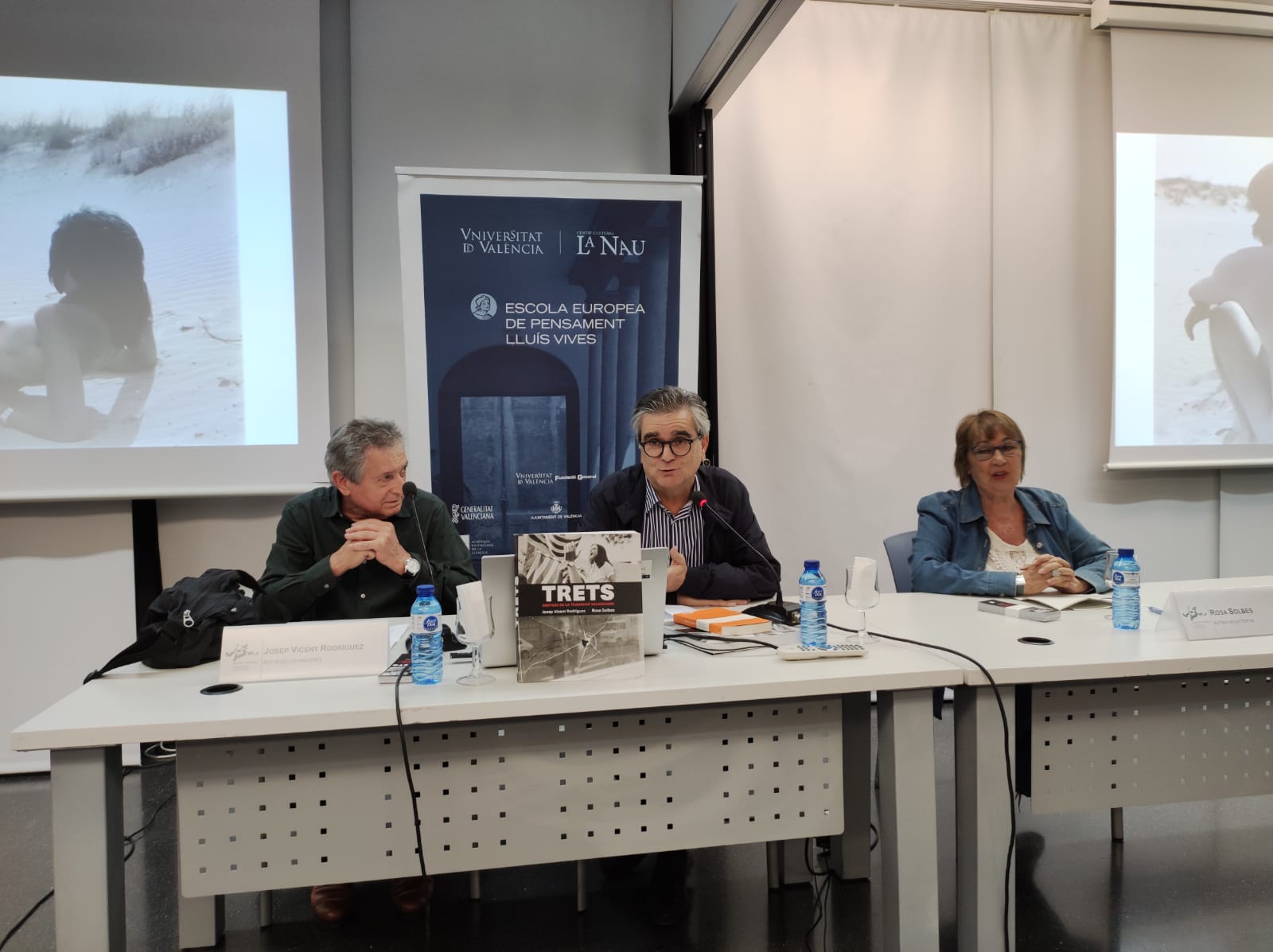 La Escola Europea de Pensament Lluís Vives de la Universitat de València organizó ayer una mesa redonda sobre el libro «Trets. Imatges de la Transició valenciana», con la participación de los autores, Josep Vicent Rodríguez y Rosa Solbes, y la moderación de Alfons Cervera.