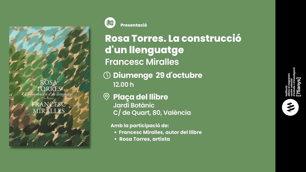 La Institució Alfons el Magnànim- Centre Valencià d'Estudis i d'Investigació es complau a convidar-vos a la presentació del llibre Rosa Torres. La construcció d'un llenguatge de Francesc Miralles.