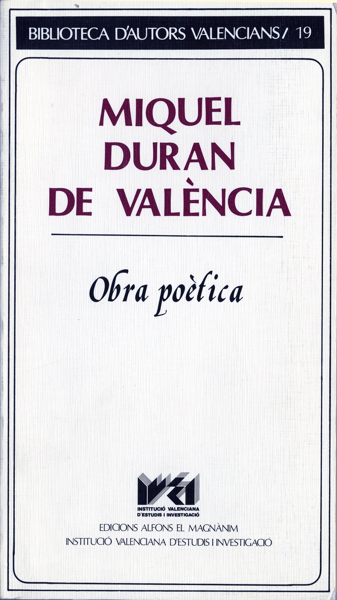 Miquel Duran de València (Autor/autora) , Carme Gregori (Introducció i edició) , Joan Fuster (Director de la col·lecció) , Eduard J. Verger (Correcció)