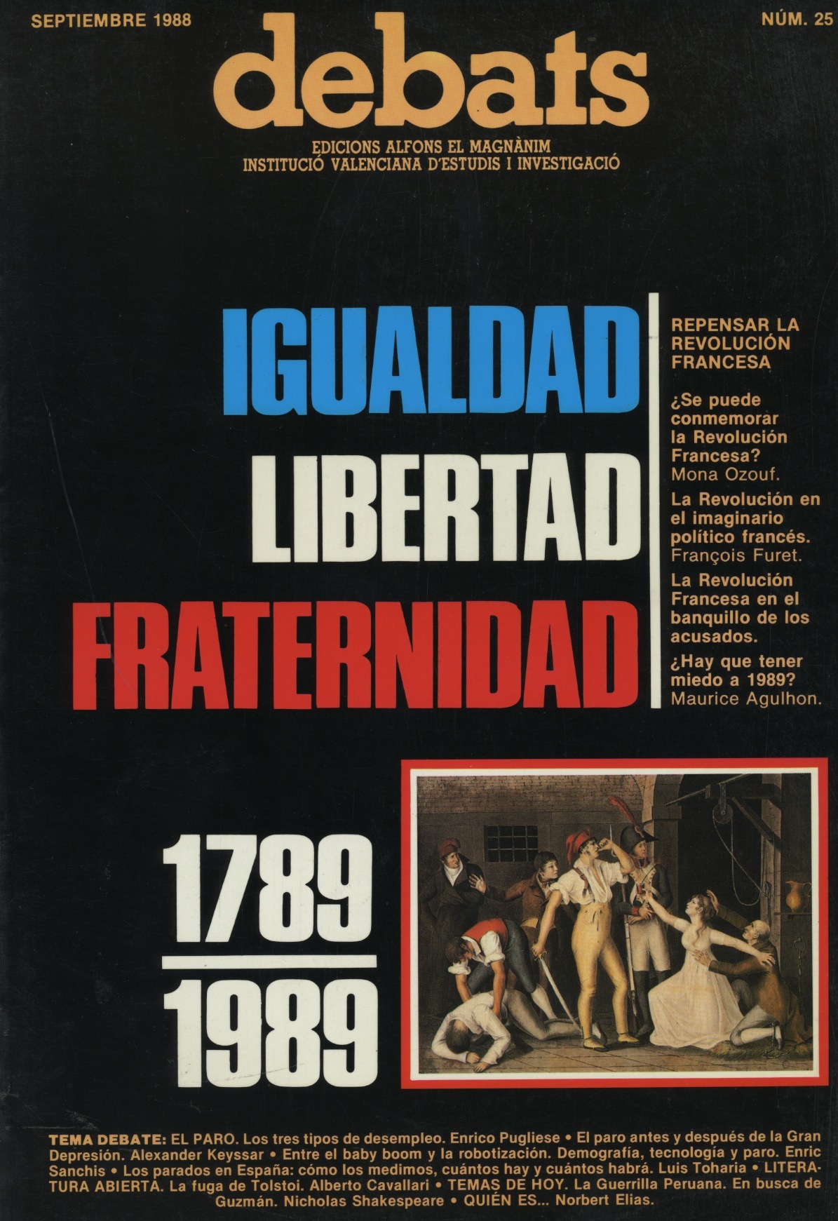 REPENSAR LA REVOLUCION FRANCESA: M. OZOUF ¿Se puede conmemorar la Revolución Francesa?; F. FURET, La Revolución en el imaginario político francés; M. AGULHON, La Revolución Francesa en el banquillo de los acusados; M. ANGULHON, ¿Hay que tener miedo de 1989?; E. PUGLIESE, Los tres tipos de desempleo; A. KEYSSAR, El paro antes y después de la robotización. Demografía tecnología y paro; A. CAVALLARI, La fuga de Tolstoi; N. SHAKESPEARE, Guerrilla peruana. En busca de Guzmán; Quién es, NORBERT ELIAS.